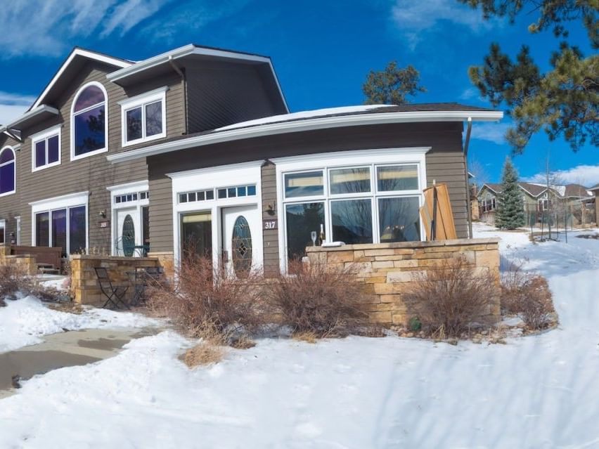 deck and large picture windows offer magnificent views of the Rocky Mountains.