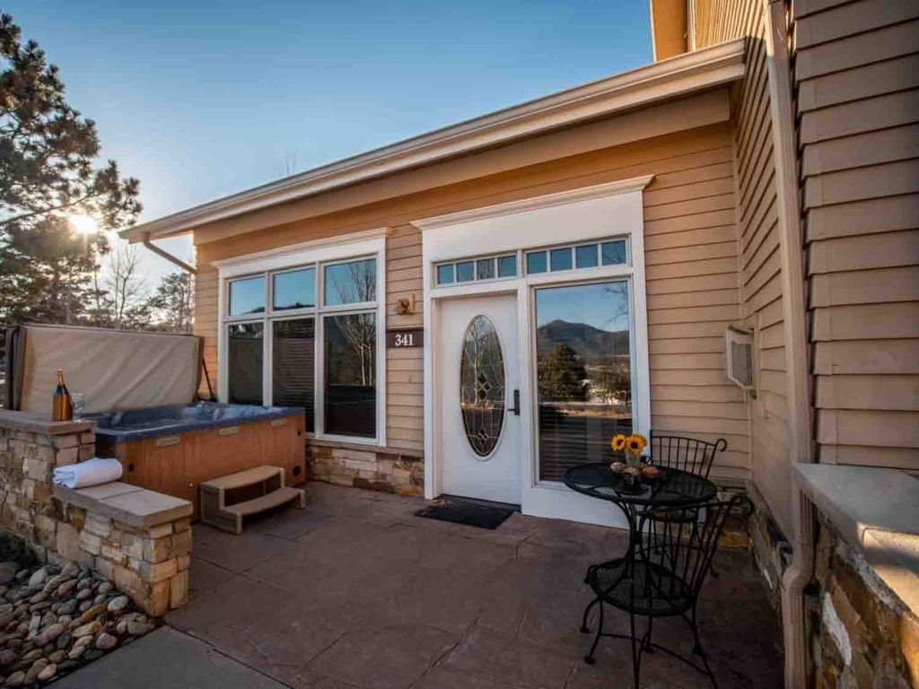 Ideal for a romantic getaway or a small group excursion, this elegant and welcoming condo has beautiful marble features, a private patio with a hot tub, and amazing views of the Rocky Mountains and Historic Stanley Hotel.