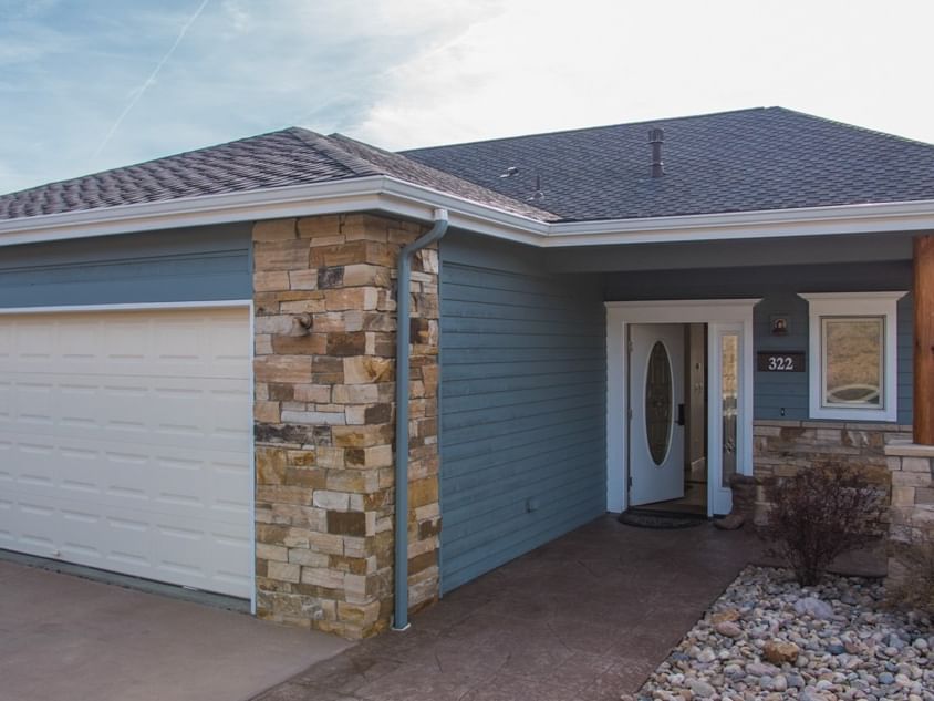 A spacious, mountain-chic, one-bedroom end unit featuring distinctive furnishings, original artwork, and a private front patio with views of the Stanley Hotel and Rocky Mountain National Park.